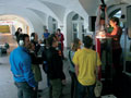 Vor der Johanniterkirche steht eine von kleinen Österreich-Bannern und -Fahnen geschmückte Bühne, die ein Redner- und ein DJ-Pult beherbergt. Feldkircher StadtpolitikerInnen fast aller Coleurs deklamieren einen Querschnitt an historischen Original-Politikerreden aus der Geschichte Österreichs zwischen 1945 und der Gegenwart. Während die Reden über Lautsprecher den Platz beschallen, legt ein