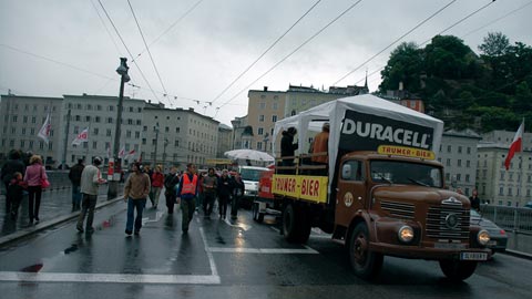 rollt mitten durch den Salzburger Touristenwahnsinn. Eine Versuchsanordnung