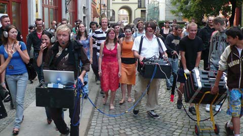 Unangemeldete, subjektive Funkkopfhörer-Stadtführung durch öffentliche Räume der südpolnischen Stadt Wroclaw (Breslau).