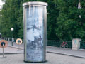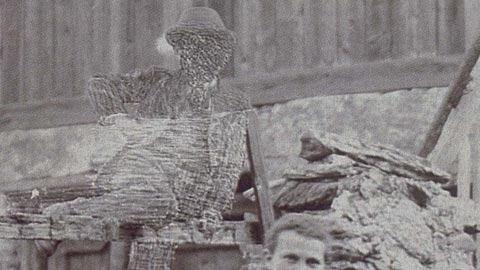 Der Künstler zeigt einen Bildausschnitt eines Gruppenfotos eines Tiroler Trachtenvereins aus dem Jahr 1902, in dem eine Frau und zwei Männer vor der Kamera posieren. Eine dritte Person im Bildhintergrund wurde vor mehr als 100 Jahren mittels Schabretusche so dilettantisch entfernt, dass die Figur in ihrer Transparenz gleichzeitig an- und abwesend erscheint, was eine Fülle von Interpretationsebenen eröffnet.