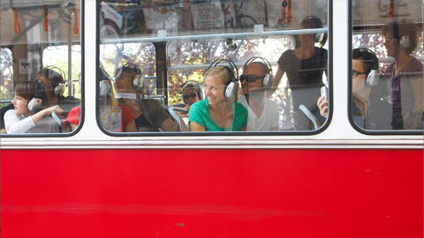 Neu produzierter Hörfilm, der in Bewegung wahrgenommen wird, mit szenischen Interventionen im öffentlichen Raum.