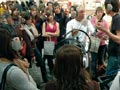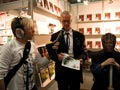 Literarische Funkkopfhörer-Durchwanderung einer Buchmesse.