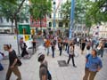 die Teilnehmer von Tourguides durch den öffentlichen Raum geleitet.