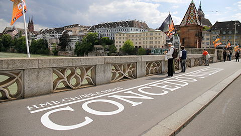 The Urban Erasmus Trail is an audio play that pilots visitors to public and semi-public places through the centre of Basel. Equipped with a smart phone, headphones and a street map, they are invited to follow the story of a somewhat overdrawn character in a detective story. The idea is to translate Erasmus’s ideas into a present-day context. The individual viewer projects the content onto an outside world that is a product of chance but at the same time steeped in staged realities. The dividing line between subjective experience and real world becomes increasingly blurred, especially when visitors are given stage directions requiring them to become active players in the drama! Staged interventions and surprising twists in the plot, make for a fascinating and thought-provoking experience.